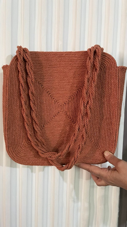کیف زنانه مدل مربع جنس کنفی و نخ پنبه