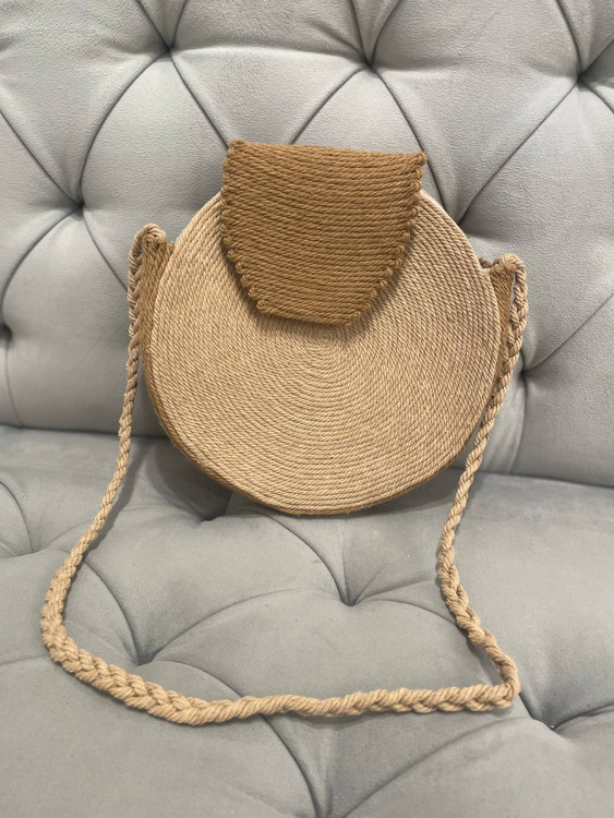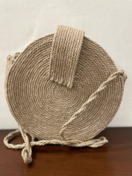 کیف زنانه مدل گرد در دار جنس کنف و نخ پنبه